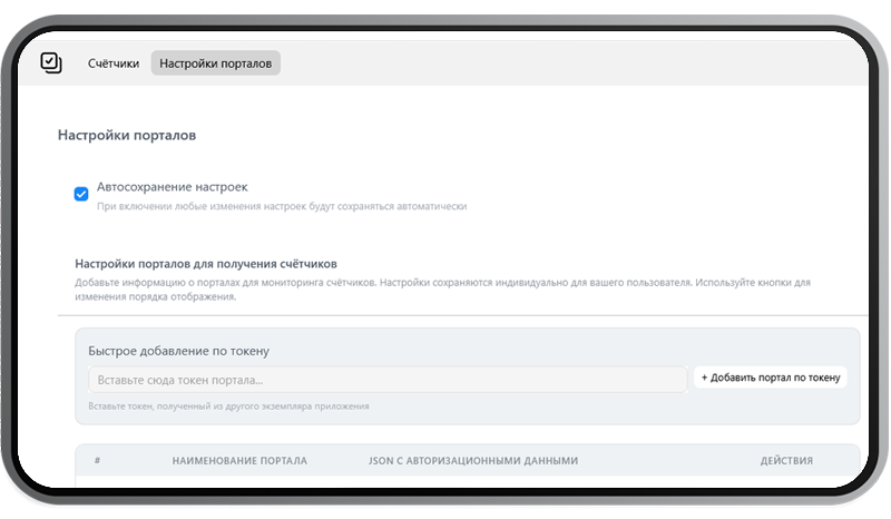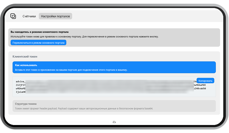 В этом режиме вы управляете подключениями, добавляете клиентские порталы и видите сводную панель со всеми счётчиками. При этом сам этот портал также может выступать в роли «клиентского» для другого основного портала — архитектура многоуровневая и гибкая.