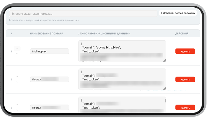 Позволяет безопасно сгенерировать токен доступа для подключения этого портала к основному.